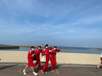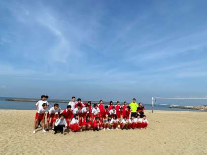 お弁当を食べたらビーチバレーとビーチフットサルの活動をします。