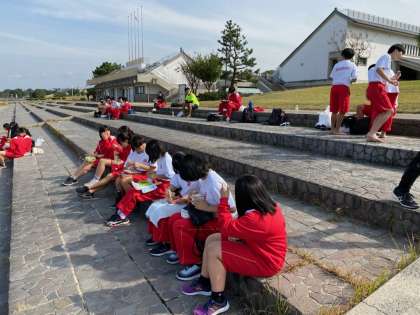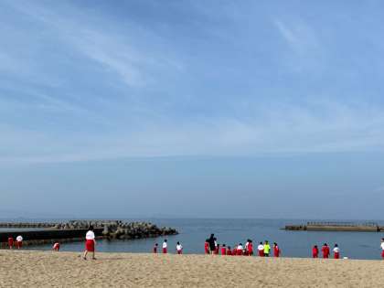 水が冷たいので海には入れませんが、足をつけてはしゃいでいます。