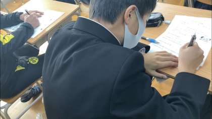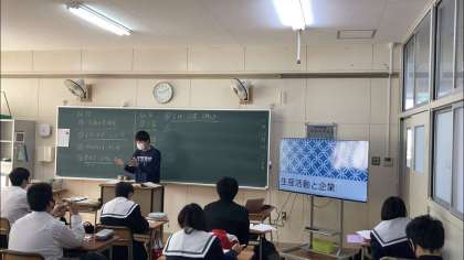 3年生、1時間目、社会「生産活動と企業」です。