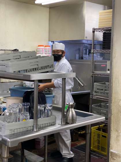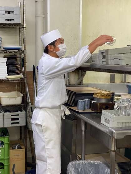 ランチタイムはお客さんがとても多く、皿洗いが大変だったようです。