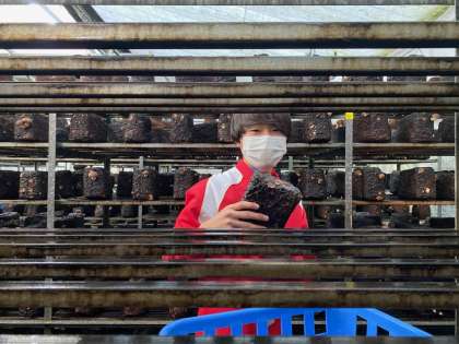 こちらの工房では、百貨店でも販売している高級しいたけを栽培しています。しいたけの袋詰めや栽培のお手伝いをさせていただきました。
