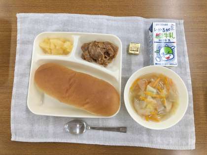 給食では、沖縄県で栽培されたパインアップルを使用し、食べやすくひと口大に切って缶詰にしています。