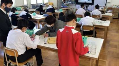 1年生、2時間目、美術「レタリング」です。