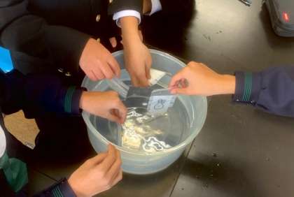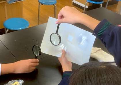 12月3日(金) 1年生 2時間目 理科 実験「光の現象」の授業の様子です。