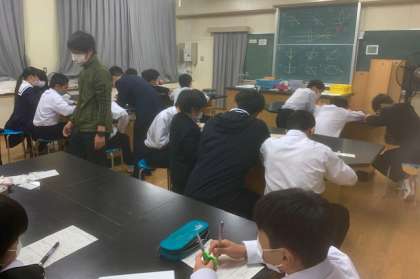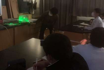 12月13日(月) 1年生 3時間目 理科 実験「光の現象」の授業の様子です。