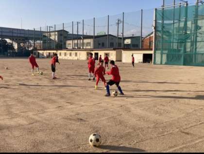 グランドでは、サッカー部が、活動に取り組んでいます。