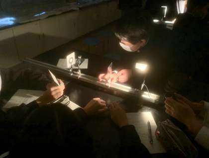 1月14日(金) 1年生 2時間目 理科 実験「光の現象」の授業の様子です。