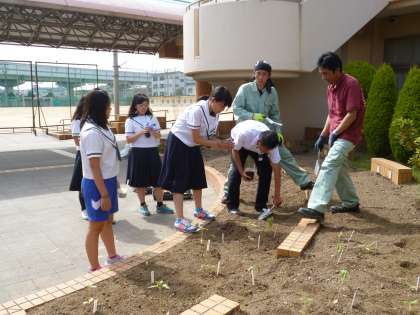 1年生の皆さんが植えた種は苗ポットの中で大きく育っているのもあれば、まだまだ小さいものもありましたが、自分の苗をそーっと植えている姿に「大切に育てよう」という気持ちが表れているようでした。