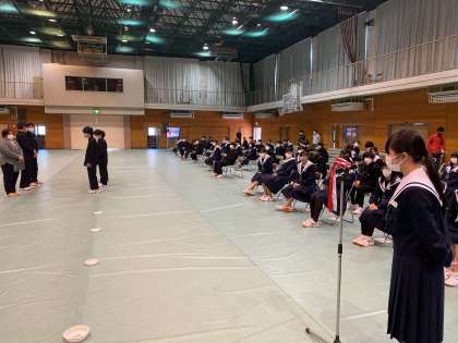 新型コロナウイルス感染症拡大防止より、卒業式での在校生の参列を制限したため、今回の予行では1・2年生の全ての在校生で行いました。