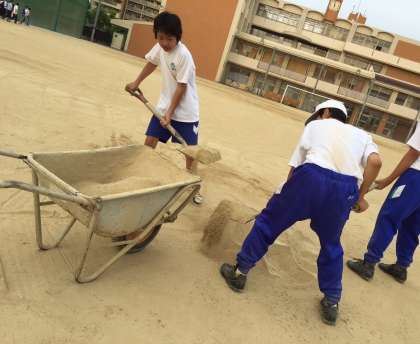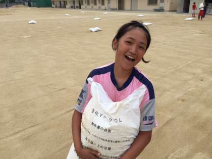 ...ということで、サッカー部&野球部合同で、普段から試合や練習でお世話になっているグラウンドの整地とにがり撒きを行いました。