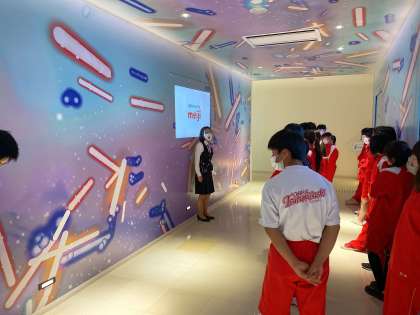 1年生は、10時頃に貝塚市にある「明治なるほどファクトリー」に到着しました。