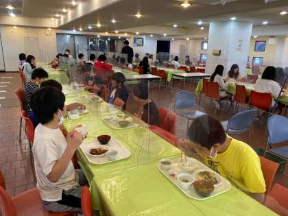 入所式の後、先に入浴を済ませて汗を流し、夕食の時間です。