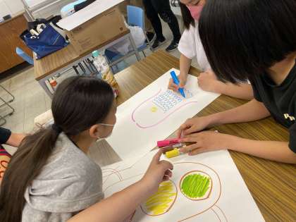 記憶力お絵かき対決では、いつも街中でよく見かけるものを班のメンバーで思い出しながら描きました。