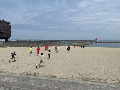 昨日と違って天気も良く、海岸で貝殻を拾うときには、波打ち際で足を付けて楽しんでいました。