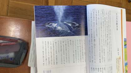 海に住む大きな生き物であるクジラは、一体どのようにして水分を確保しているのか、私たち人間と同じ哺乳類がどのようにして海で生活しているのか、文章を読んで学習しました。