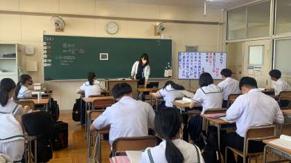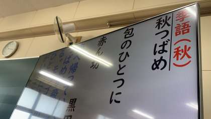 実力テスト後の今日の授業では、テストの結果を確認して「俳句」について学習しました。季節のことばを使った「5・7・5」の「俳句」という作品を意味を想像しながら学習することができました。