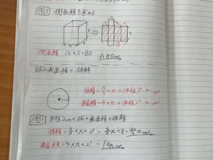 図形の体積や表面積を求める学習です。
