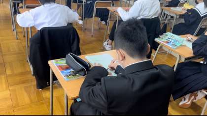 先生の話を真剣に聞き、作業に取り組んでいました。