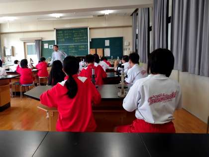 先生の説明を真剣に聞き、顕微鏡の使い方を学びました。