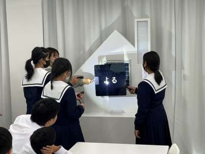 スタディーフィールドでは、タブレットを使いながらエネルギーのいまとみらいを学びます。