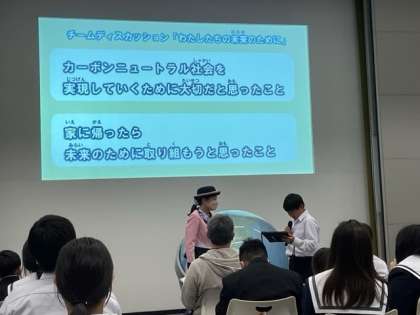 見学後は、大ホールに集合して、見学で感じ、考えたことを発表しました。