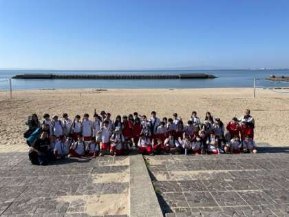海をバックに撮りました。しっかり運動しました。