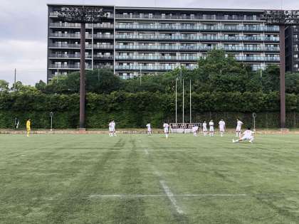 会場がいつもと違い、人工芝、ピッチの大きさも広く、多く方の観戦もあり生徒たちはとても緊張していました。