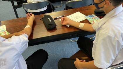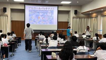 パッチテストなどを行い、飲酒が体に与える影響について学習しました。