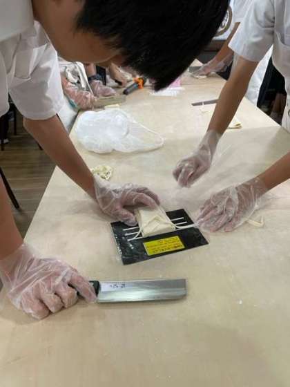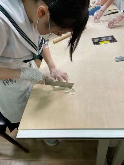 生地を重ねて、切って行きます。