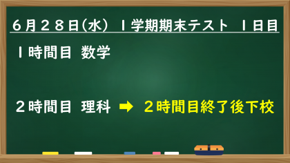 6月28日(水) 1学期期末テスト 1日目の日程について