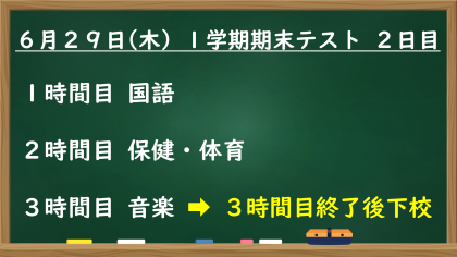 6月29日(木) 1学期期末テスト 2日目の日程について