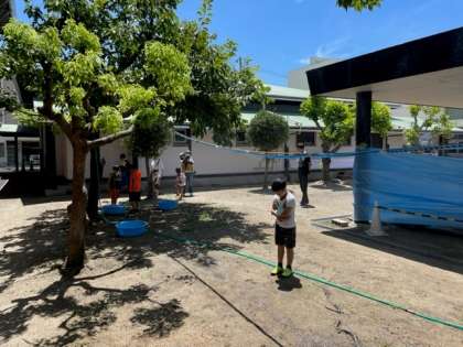 鶴見橋中学校に「ジャガピーパーク」がやってきました。
