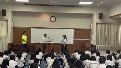最後に、生徒指導の先生からは、来年度からの新しい制服の紹介と、