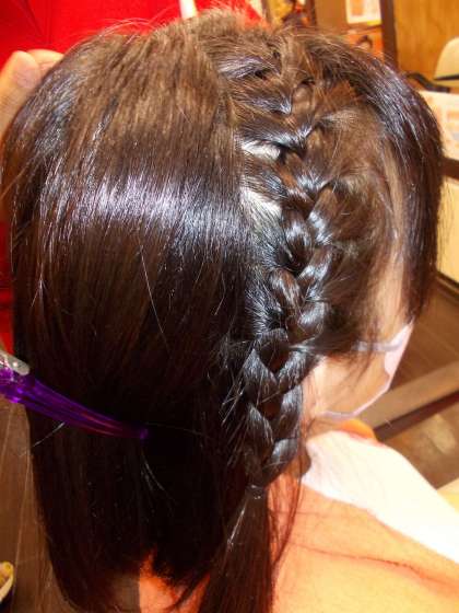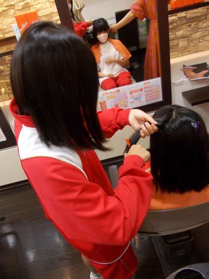 美容室の仕事のひとつヘアアレンジを丁寧に教えてもらいながら実践していました。