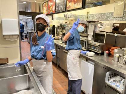 ミスタードーナツでは、片付けや準備などを体験させていただきました。
