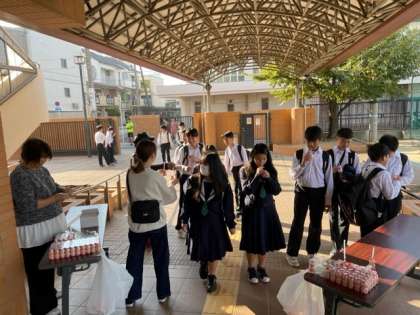 本日(10月20日)の朝、PTAによる乳酸菌飲料(ヤクルト)の提供を行いました。