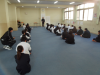 1年生英語の授業では、2学期より外国人講師のデイビッド先生が教えに来てくれています。この日は「Who is this?」の会話練習から、ペア学習のBINGOゲームに取り組み、楽しい時間を過ごしました。ゲームの中でも積極的に英語を使おうとする様子が見られ、充実した1時間となりました。