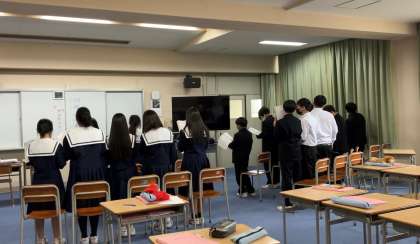 今日は、リコーダーで「きらきら星」を演奏し、「飛び出そう未来へ」、「マイバラード」を合唱しました。