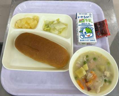 食べ物には、栄養価が高く、たくさんとれて、おいしく食べられる時期(旬)があります。今日の給食には、さつまいもが使われています。