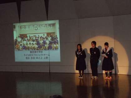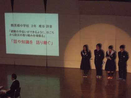12月12日(土)、大阪フィルハーモニー会館で西成教育フェスタが行われました。本校から4名の生徒が参加し、子ども防災プロジェクトチームの活動で学んだことを発表しました。