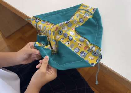 今日は、巾着づくりの仕上げの作業に取り組みました。