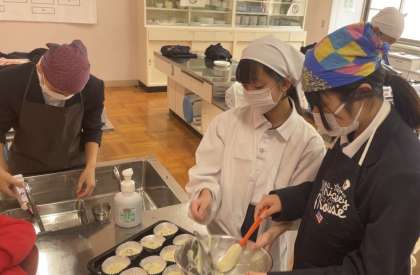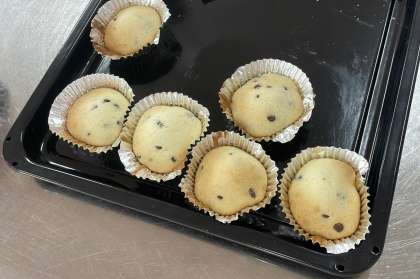 今日は、調理実習で「チョコチップマフィン」を作りました。