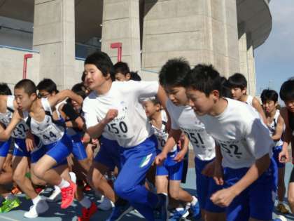 しーんと静かになったところで、乾いたピストルの音。寒さを吹き飛ばすように、選手たちが一斉にスタートしました!