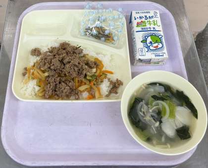 今日のビビンバの具は、コチジャンで味付けした肉と切干しだいこんなどで作ったナムルです。