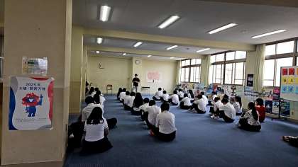 本日の学年集会では、池本先生から先週の体育大会についてお話があり、体育大会で頑張ってくれた実行委員の生徒に拍手が送られました。