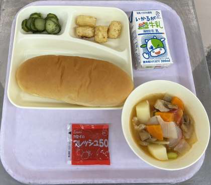 今日の給食では、「きゅうりのバジル風味サラダ」に乾燥バジルを使っています。