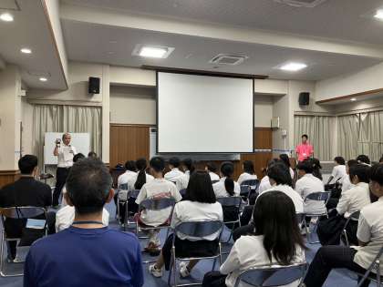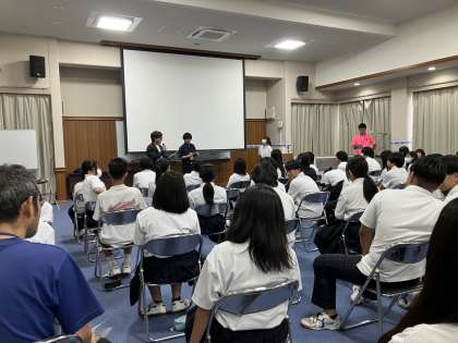 講師は薬物乱用防止委員と難波少年サポートセンターの方に来ていただき、SNSの危険性や「薬物は絶対にいけない」ことをお話ししていただきました。