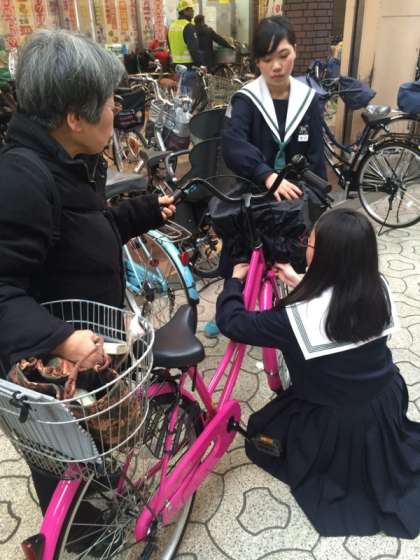 また、この活動の前に西成警察署の方と協力してひったくり防止カバーの配布も行いました。