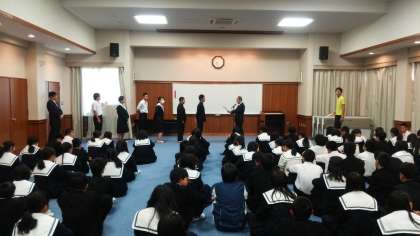 先週月曜日の生徒会役員選挙で当選した役員の認証式が、本日朝の全校集会で行われました。