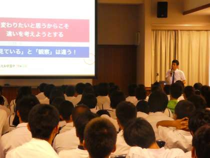 6月20日(月)午後、的場亮先生(金蘭会高校・特任講師)をお招きして、進路講演会を実施しました。生徒たちは、90分間、真剣に聞き入り、多くのことを学んでくれました。「感謝」という言葉をキーワードに、どう生きていくかを考えさせてもらえるすばらしい講演でした。